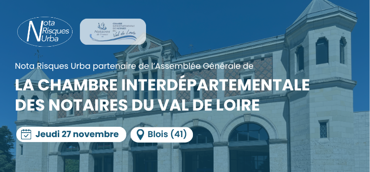 La Chambre Interdépartementale des Notaires du Val-de-Loire, présidée par Monsieur Luc Villet, organisera sa prochaine Assemblée Générale le jeudi 27 novembre à la Halle aux Grains, à Blois. Nota Risques Urba est fier d’être un partenaire fidèle de cet événement incontournable pour la profession notariale.